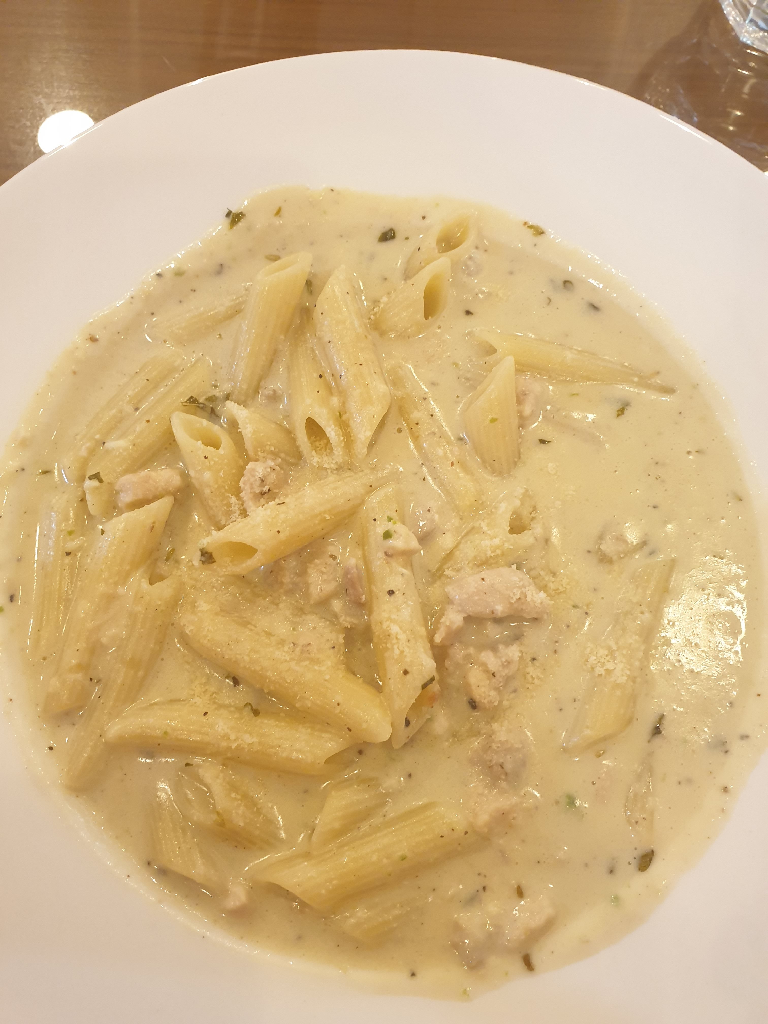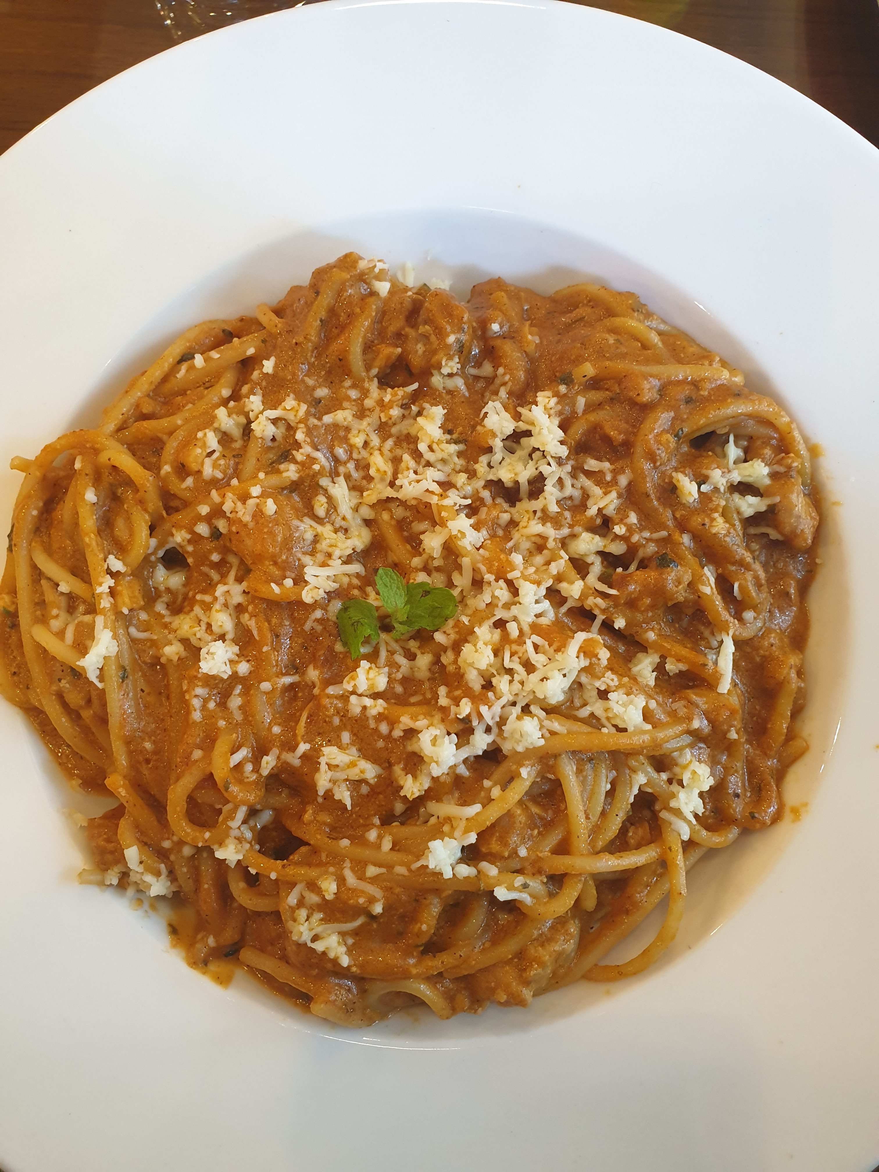 It was delicious with perfectly cooked spaghetti made in spicy version sauce. However it would be great to turn the hit of spiciness up a little in the sauce but you can tell them to do so.